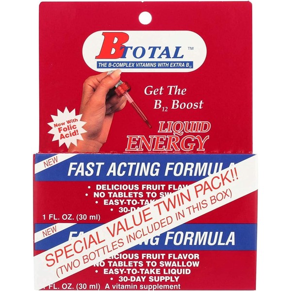 The B-Total Solution - sublingual vitamin B-12 along with folic acid and other B-Complex vitamins. Two 1 oz dropper bottles.