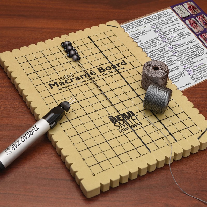 The Beadsmith Mini Macrame Combo - Bead Board 7.5 x 10.5 inches - Box of 40 T-pins 1.75 inches - Bracelet Project & Instructions Included - Ideal for securing & creating Macrame and Knotting Creations