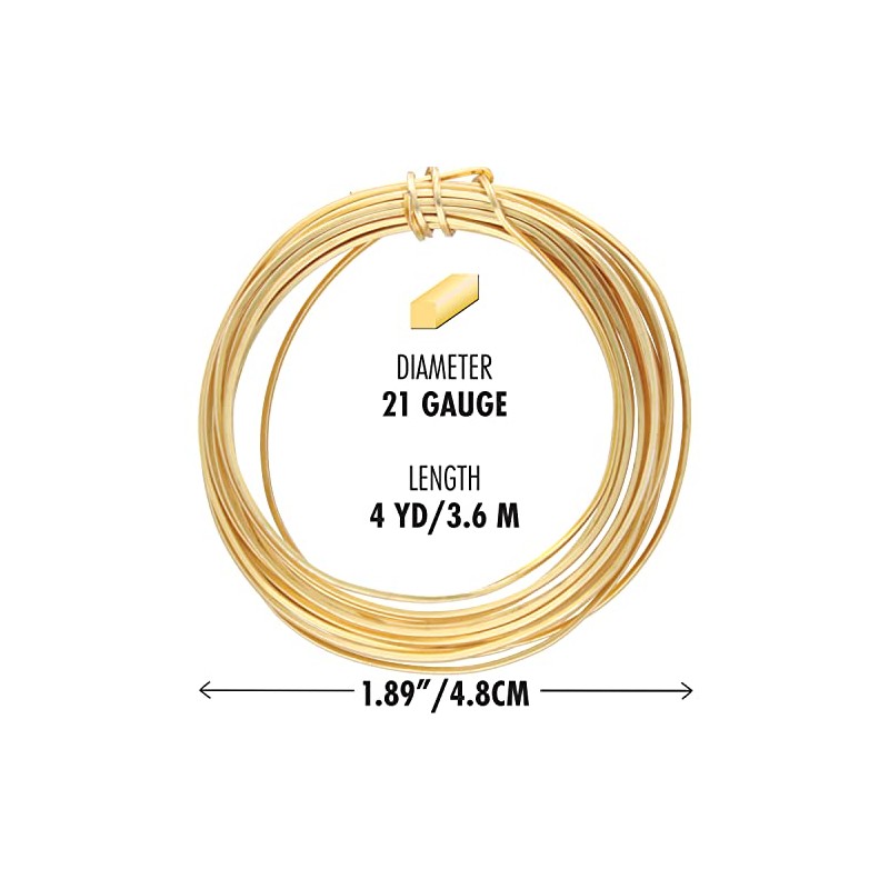 - COILS OF WIRE: Made of the highest quality plating, this square wire can be twisted together to make a statement or simply used alone on your jewelry and wire wrapping designs. This vibrant gold wire is a 21-gauge thickness in a coil of 4 yards (3.66 meters).