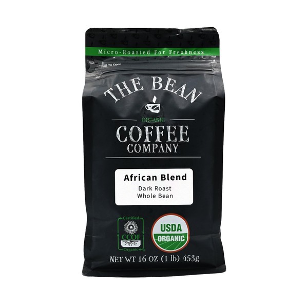 The Bean Organic Coffee Company African Blend, Medium Roast, Whole Bean Coffee, 16-Ounce Bag