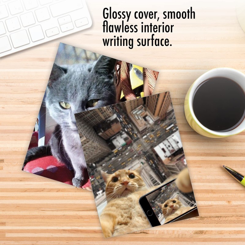 The Best Card Company 10 Assorted Thank You Notecards Bulk Box Set 4 x 5.12 Inch with Envelopes (10 Designs, 1 Each) Cats Selfie M4953TYG-B1x10
