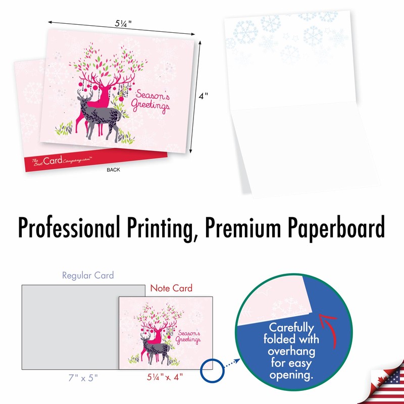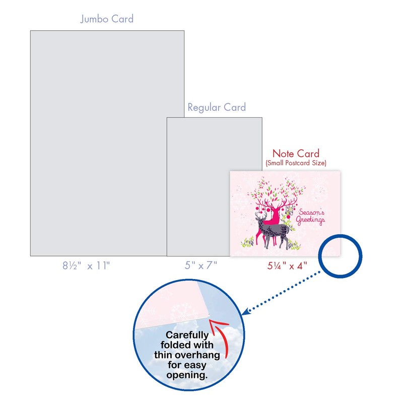 - Each holiday card has a glossy cover page that is slightly longer than the back for easy opening
