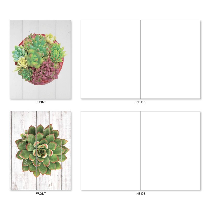 The Best Card Company - 20 Assorted Blank Plant Cards Boxed (4 x 5.12 Inch) (10 Designs, 2 Each) - Shiplap Succulents AM6438OCB-B2x10