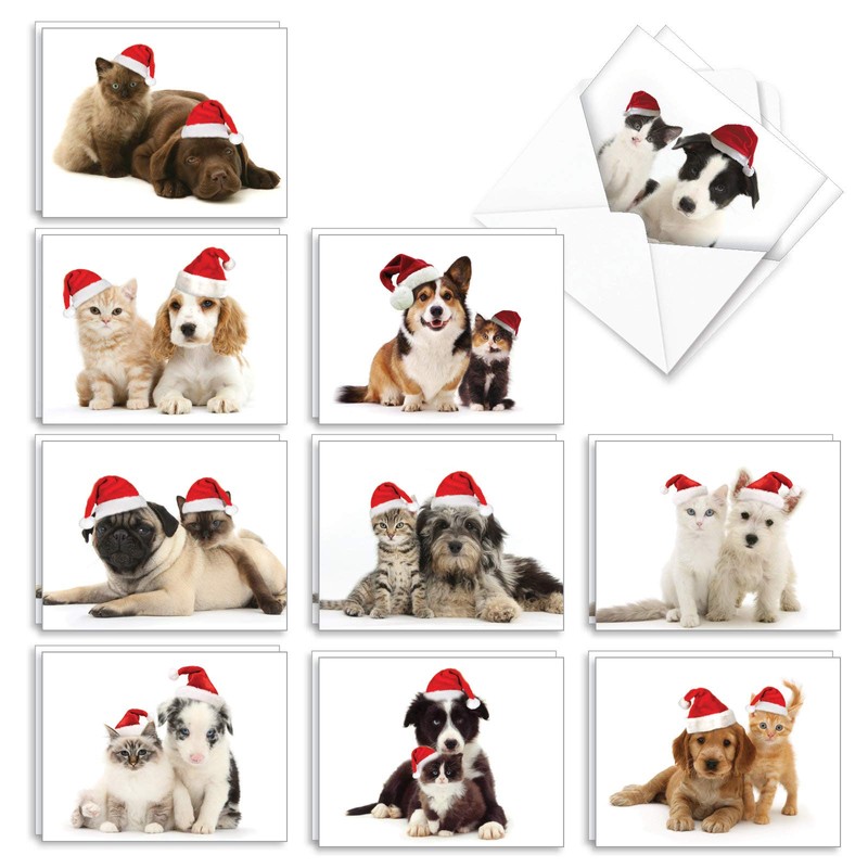 The Best Card Company - 20 Blank Christmas Note Cards (10 Designs, 2 Each) - Bulk Holiday Notecard Set (4 x 5.12 Inch) - Christmas Copy Cats AM6596XSB-B2x10