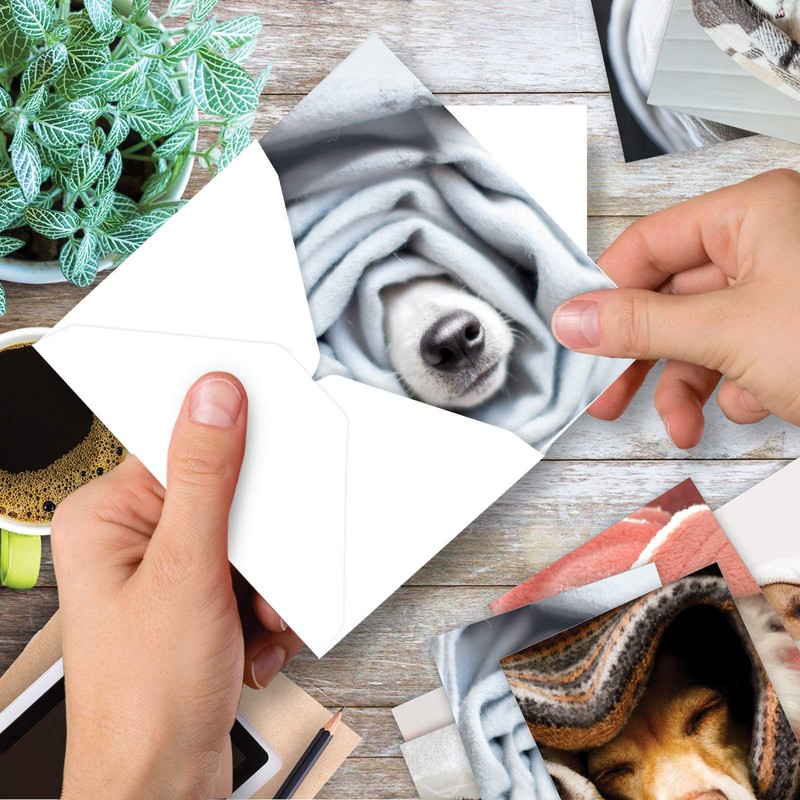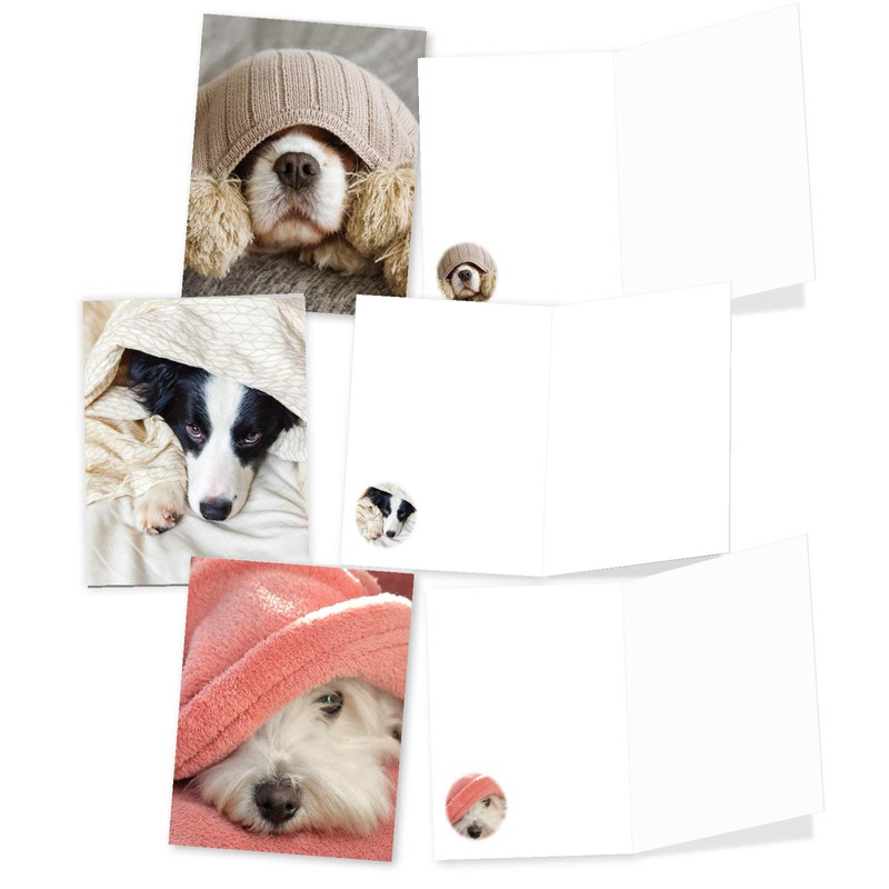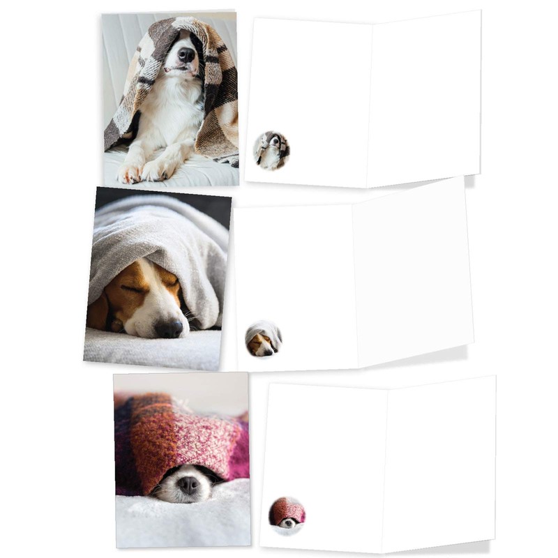 The Best Card Company - 20 Bulk Dog Note Cards Blank (4 x 5.12 Inch) - Adorable Pet Puppy Notecards (10 Designs, 2 Each) - Pups in a Blanket AM9265OCB-B2x10