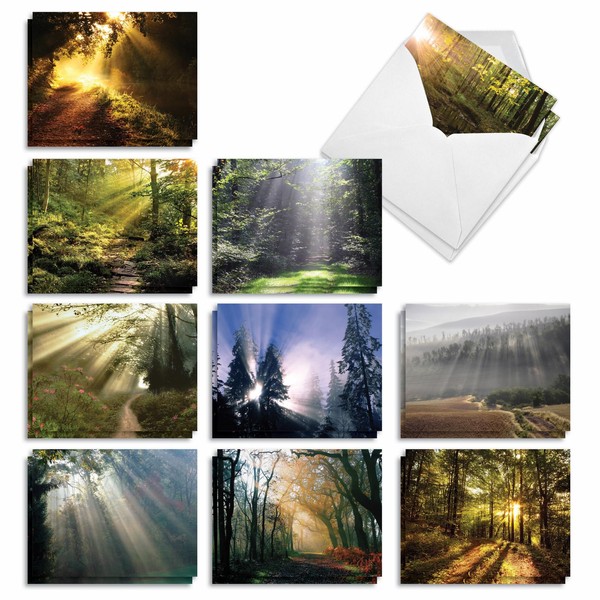 The Best Card Company - 20 Landscape Nature Note Cards Blank (4 x 5.12 Inch) (10 Designs, 2 Each) - Shining Through AM1735OCB-B2x10-NB