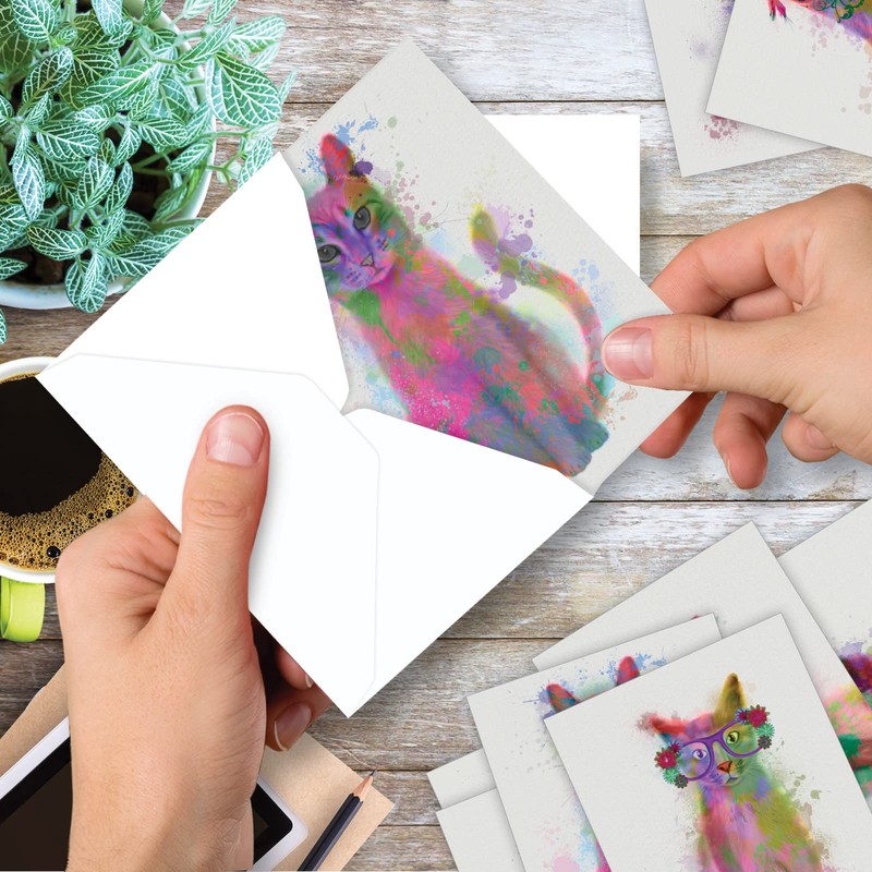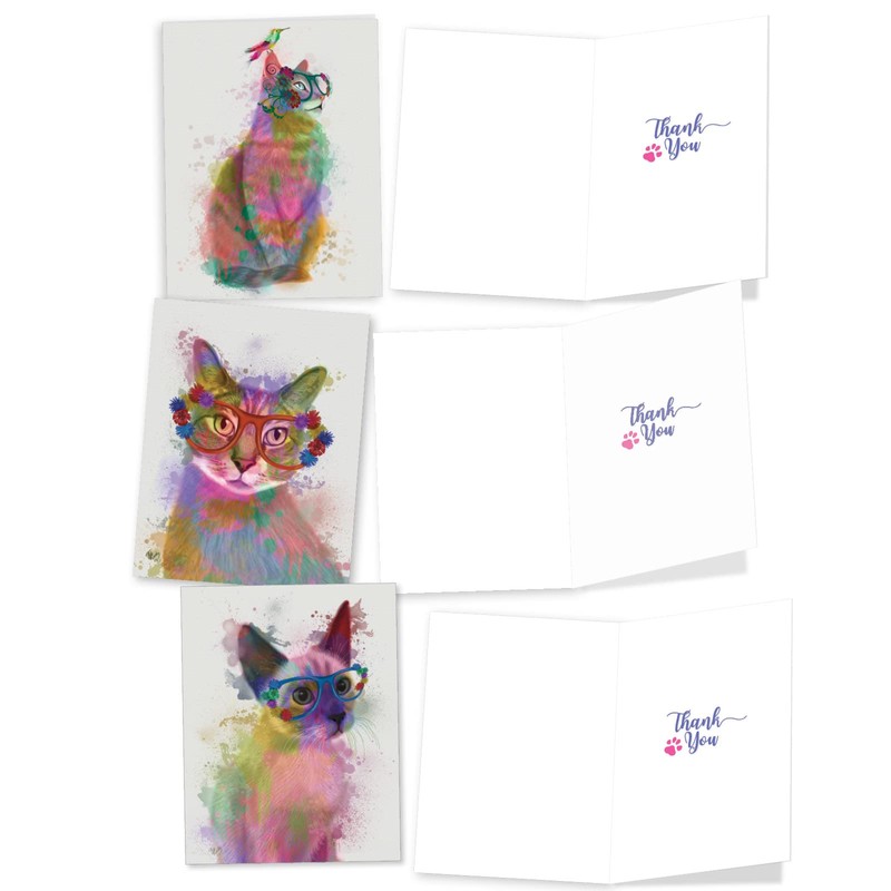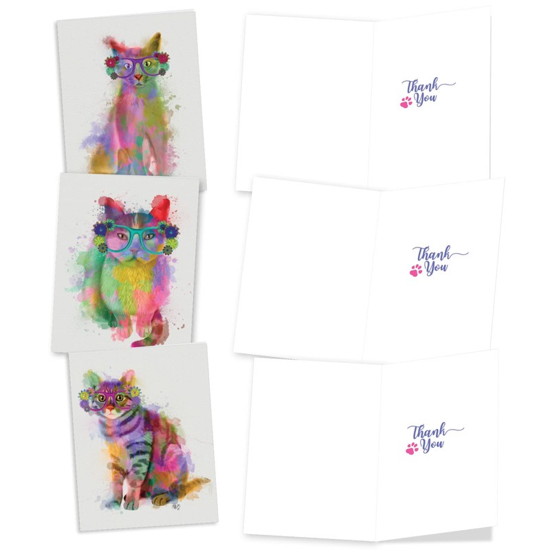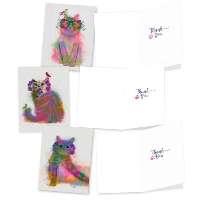 The Best Card Company Funky Rainbow Cats - 20 Assorted Boxed Thank You Note Cards with Envelopes (4 x 5.12 Inch) - AM6199TYG-B2x10