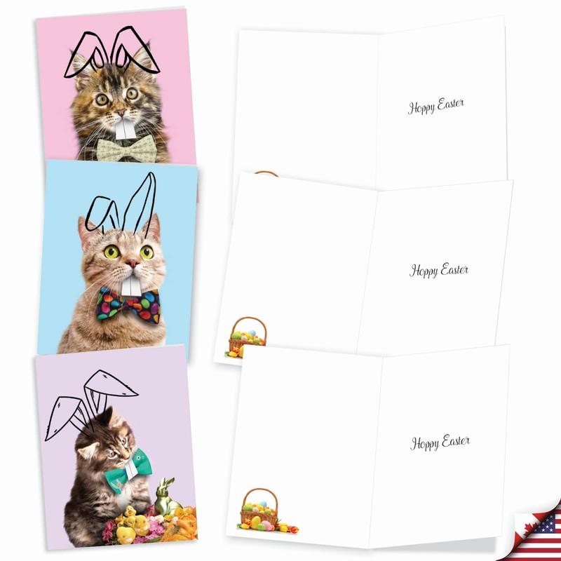 The Best Card Company Hoppy Cats - 10 Assorted Boxed Easter Note Cards with Envelopes (4 x 5.12 Inch) - AM9189EAG-B1x10