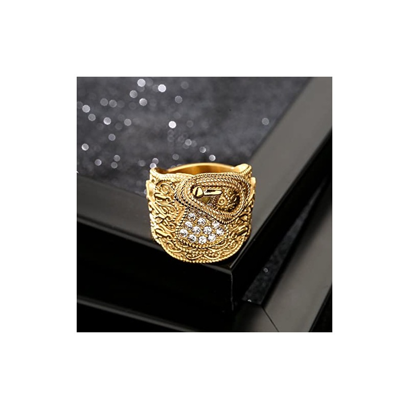 THE BLING KING Gold Saddle Ring with Stones, Mens Ring with 18K Real Gold Plating, Premium Gold Fashion Ring Unique Jewellery Gift for Men and Teens (size 10 - UK size T)