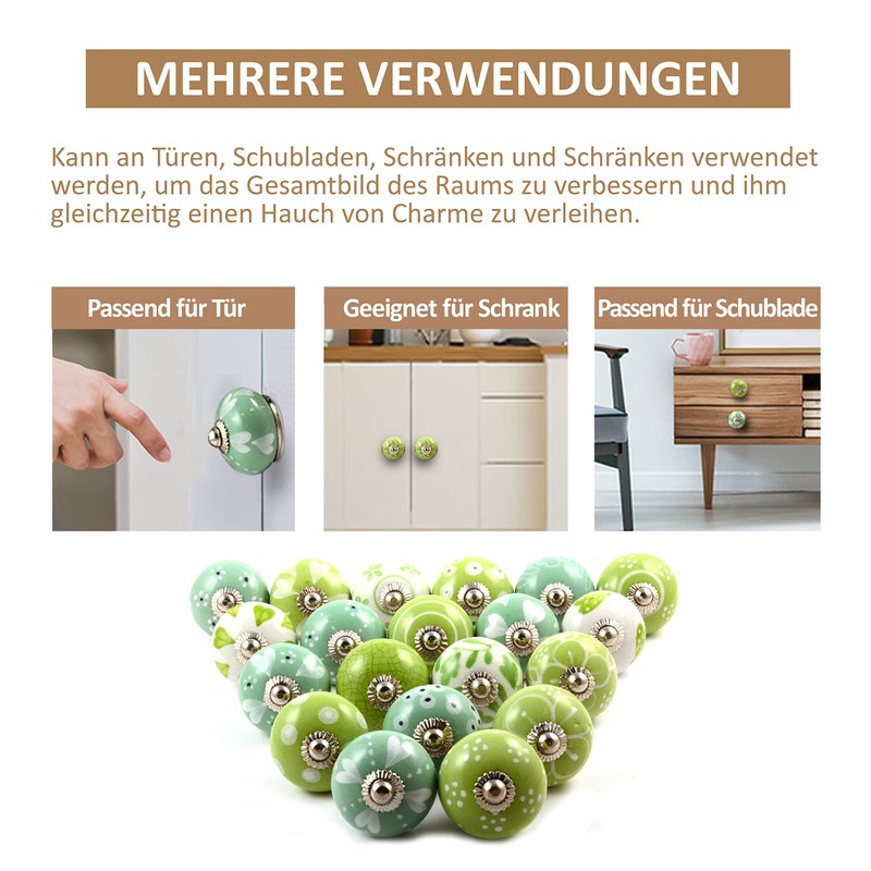 The Boho Street The Boho Street Handgefertigte Keramik-Mehrzweckkn?pfe Keramik-Trgriffe im Set-Sortiment (Ceramic Knobs Pack of 20, Green & White)