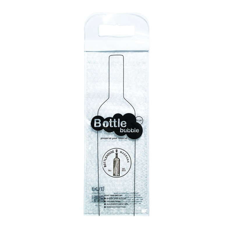 • Get your wine ready for your next getaway. Air filled bubbles protect your bottle while a sticky seal keeps any spill contained. Grab & go handles make it easy to tote and a cinch to open. So don't leave your wine behind next time you hop on your plane.