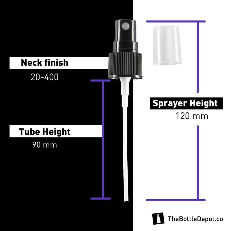 The Bottle Depot - 20-400 PP Fine Mist Sprayer (Dip Tube 91mm) - 300 Pack - Black - Wholesale - Fits 2oz