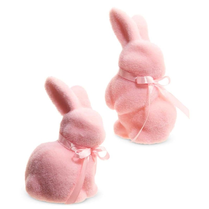 - Stylish Unique Design: Featuring a set of 2 pink flocked bunnies with bows, this pastel bunny design is sure to be treasured year after year!