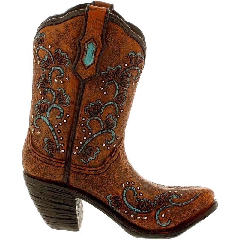 - RUSTIC COWBOY BOOT DESIGN – Features an ornate Western-style pattern with floral and turquoise details, giving it an authentic cowboy boot look for decorative appeal.