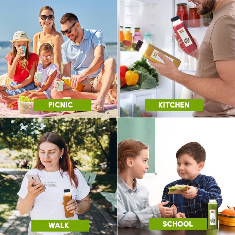 Reusable and Disposable: These reusable juice bottles, allow you to use them multiple times. However, if you prefer a disposable option, these empty bottles are also great for one-time use, depending on your preference. Whether you need juicing bottles reusable for personal use or for business, these plastic juice bottles with caps are a great choice.