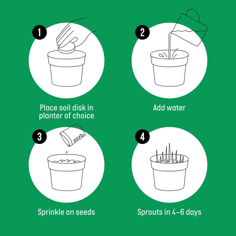 - Cat Plant Magic: Add a soil disk, a splash of water, and a sprinkling of seeds, and watch your cat grass planter kit sprout like magic.Read our Cat Ladies insert for easy-to-follow instructions and growing tips, and watch your organic cat grass sprout up to 4” in just 4–7 days. No green thumb required.