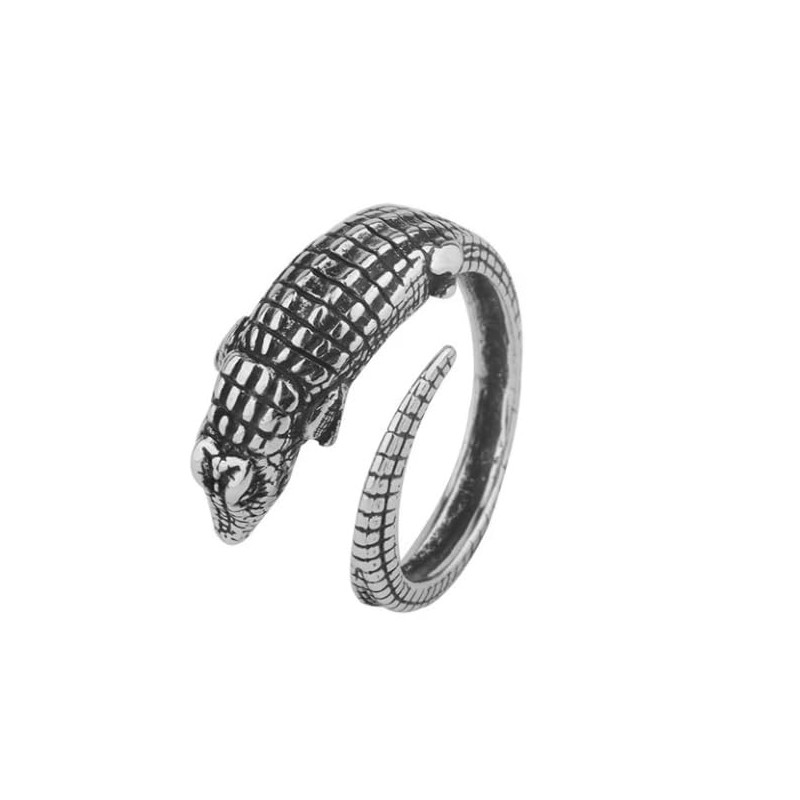 This exquisite crocodile-themed ring is a striking piece of jewelry, expertly crafted in a detailed design that wraps around your finger with elegance and edge. The body of the crocodile forms the band, adorned with intricate scales that replicate the rugged texture of the animal’s skin, while the head is carved with precision to showcase its piercing eyes and lifelike snout. Made of high-quality silver, this ring boasts a polished finish that adds a touch of sophistication to its bold design, making it a standout accessory for any outfit. The adjustable fit of the ring ensures comfort and flexibility, making it suitable for various finger sizes while maintaining its striking silhouette. Its unique design captures the spirit of adventure and strength, perfect for individuals who love distinctive and nature-inspired jewelry. Whether worn casually or as a statement piece for special occasions, this crocodile ring is sure to draw admiration and spark conversations wherever you go. Ideal for lovers of wildlife-inspired fashion, this ring also makes a thoughtful gift for someone who appreciates bold and artistic designs. Its timeless appeal blends a rugged aesthetic with refined craftsmanship, symbolizing resilience and individuality. Packaged in an elegant box, this crocodile ring is a perfect choice for birthdays, anniversaries, or as a memorable keepsake for someone special.
