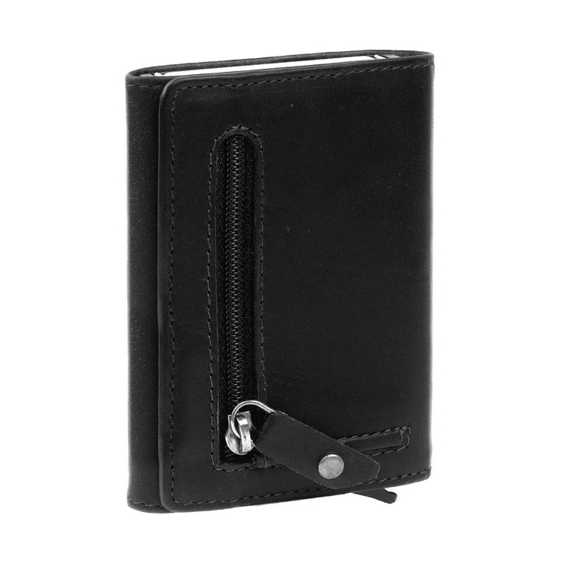 Compact, elegant design, highest quality and security combine in this credit card holder from The Chesterfield Brand. The sturdy aluminium case can hold up to 6 cards, which slide out in order at the touch of a button. In addition, the case is equipped with RFID protection against data theft. The elegant case made of high-quality leather provides individual elegance and has additional compartments for cards, as well as a note compartment and a zip pocket on the back for coins, shopping trolley token or other small valuables.