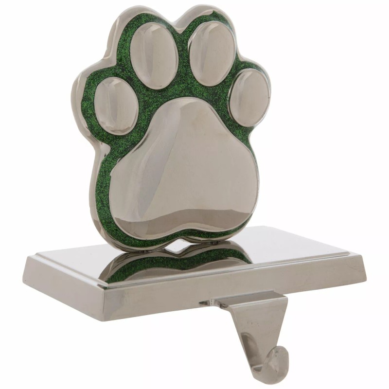 The Christmas Shoppe Green Glitter & Silver Paw Print Metal Stocking Holder