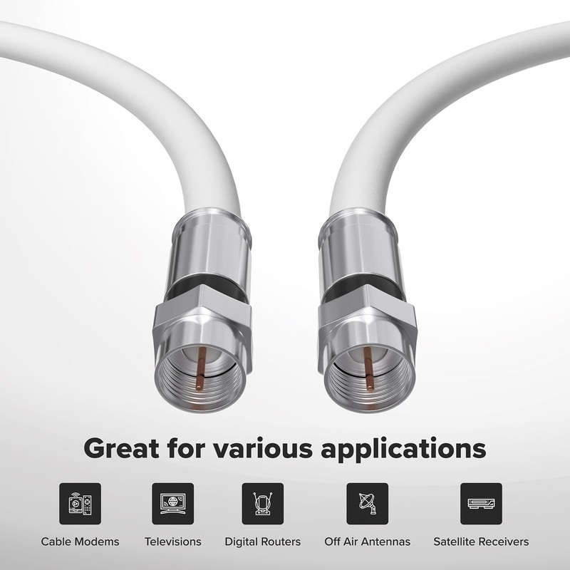 - Stay Connected: Connects devices such as TVs, VCRs, DVD players, Satellite receivers, CATV accessories, digital Cable modem box, off-air antenna, HD antenna for TV and other F-type devices