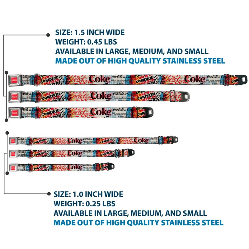 The Coca-Cola Company Pet Collar, Dog Collar Metal Seatbelt Buckle, Coke is It Pop Art Collage Multi Color, 15 to 24 Inches 1.0 Inch Wide