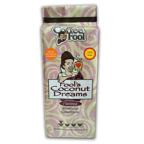 The Coffee Fool Turkish Powder, Fool's Decaf Coconut Dreams, 12 Ounce