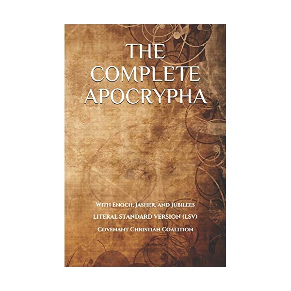This is the only modern translation of the complete collection of deuterocanonical books known popularly as "The Apocrypha" that also includes Enoch, Jasher, and Jubilees. Aside from Jasher, they were included as secondary works in the canon of Scripture for most of the Church's history. The Literal Standard Version (LSV) is a modern translation that stays true to the original manuscripts. This handsome 6" x 9" edition features a matte finish with thick, high-quality, cream-colored pages and 8-point Times New Roman font for elegance and easy reading. The Complete Apocrypha offers a staggering two-thirds as much material as the canonical 66 books of the Holy Bible. Additionally, the apocryphal versions of Esther and Daniel are included in their entirety.The Complete Apocrypha includes Tobit, Judith, Wisdom, Sirach, Baruch, 1st, 2nd, 3rd, and 4th Maccabees, 1st and 2nd Esdras, Prayer of Manasses, Enoch, Jubilees, Jasher, Psalm 151, and all of the apocryphal additions to Daniel and Esther (including The Prayer of Azariah, Susanna, and Bel and the Dragon). This collection is published by Covenant Press, the publishing arm of the Covenant Christian Coalition.