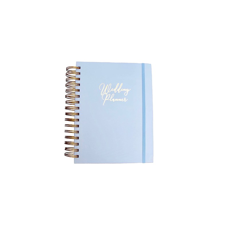 Made from a textured white paper with thick, duck egg blue cardboard and gold foil, this beautiful, gold ring bound book is the perfect accompaniment to anyone planning a wedding.