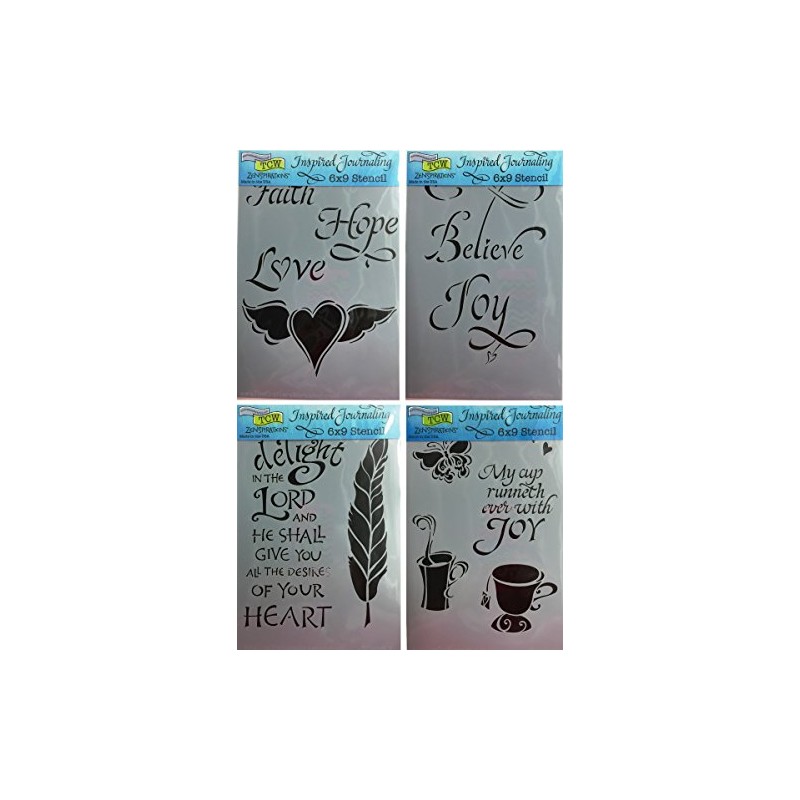 - Custom 4-piece The Crafter's Workshop Zenspirations Inspired Bible Journaling Stencil Set of 1 each Faith Hope Love (TCW2145), Believe (TCW2146), Take Delight (TCW2157) and Cup of Joy (TCW2158) - bundle 4 items
