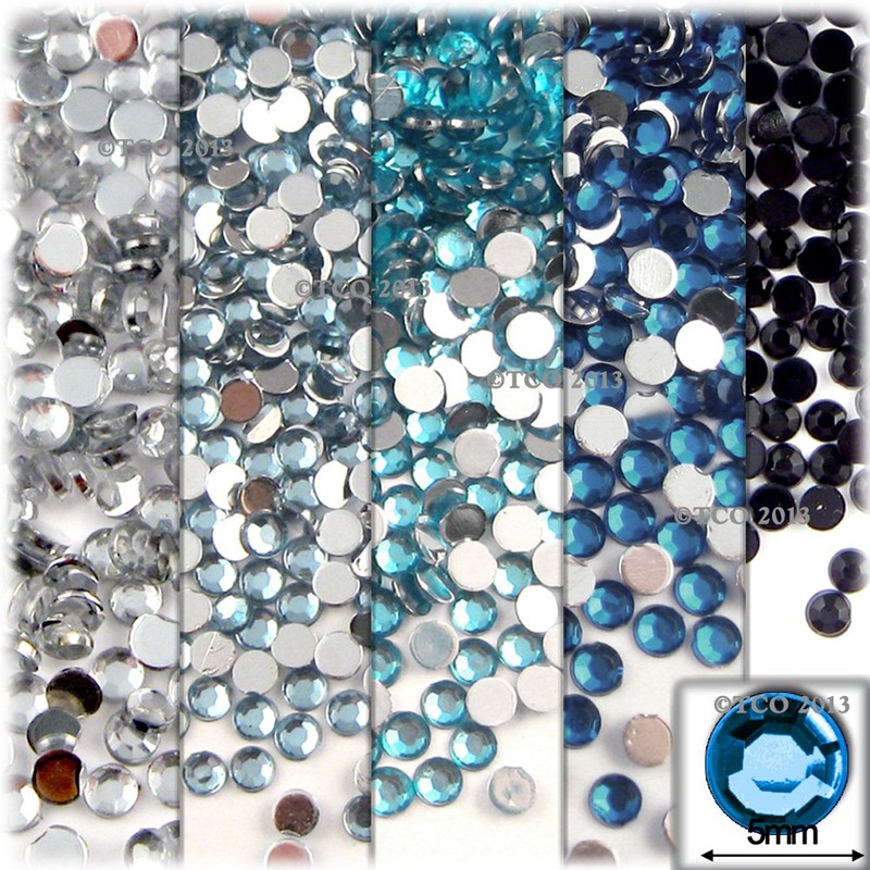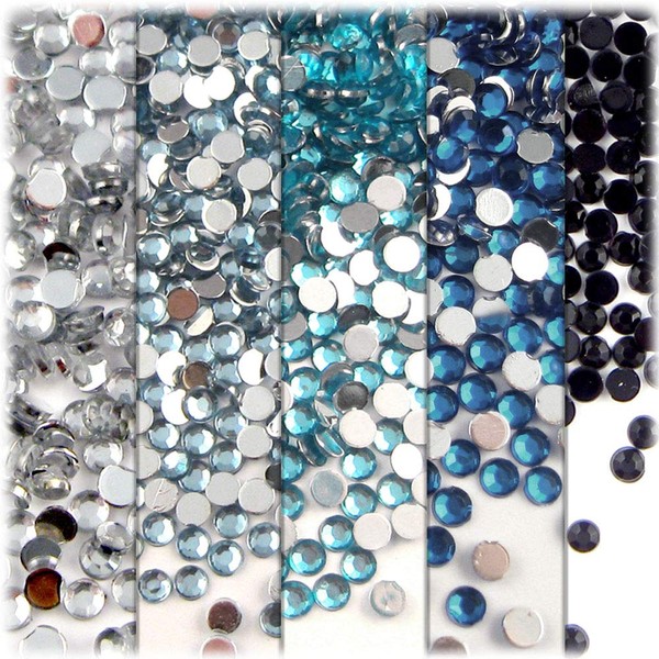 The Crafts Outlet 5-Pack Set (5X - 144-Piece), Round 5mm Rhinestones, Flatback, Blue Tones