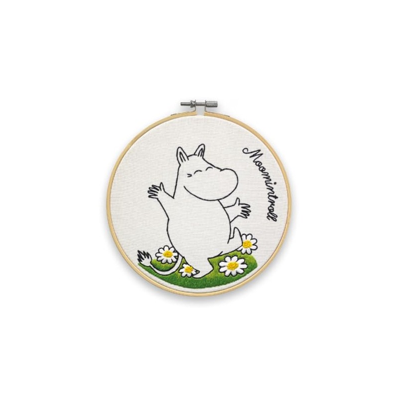 The Crafty Kit Company Moomin Embroidery Craft Kit - Moomintroll Dancing Embroidery Craft Kit for Beginners with Hoop, Needle, Thread and Instructions