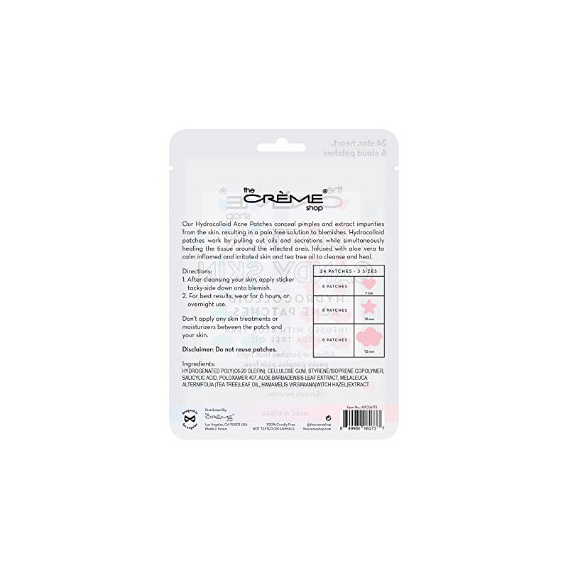 - MADE IN KOREA: Korean products are taking the skincare world by storm thanks to their innovative formulations and cute designs. These Crème Shop pimple patches are made in Korea with natural ingredients to help combat acne.