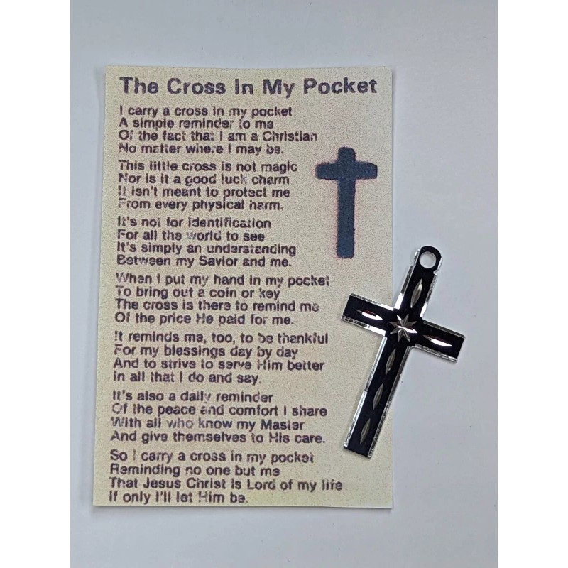 The Cross In My Pocket poem card with a BLACK & SILVER Pocket Cross