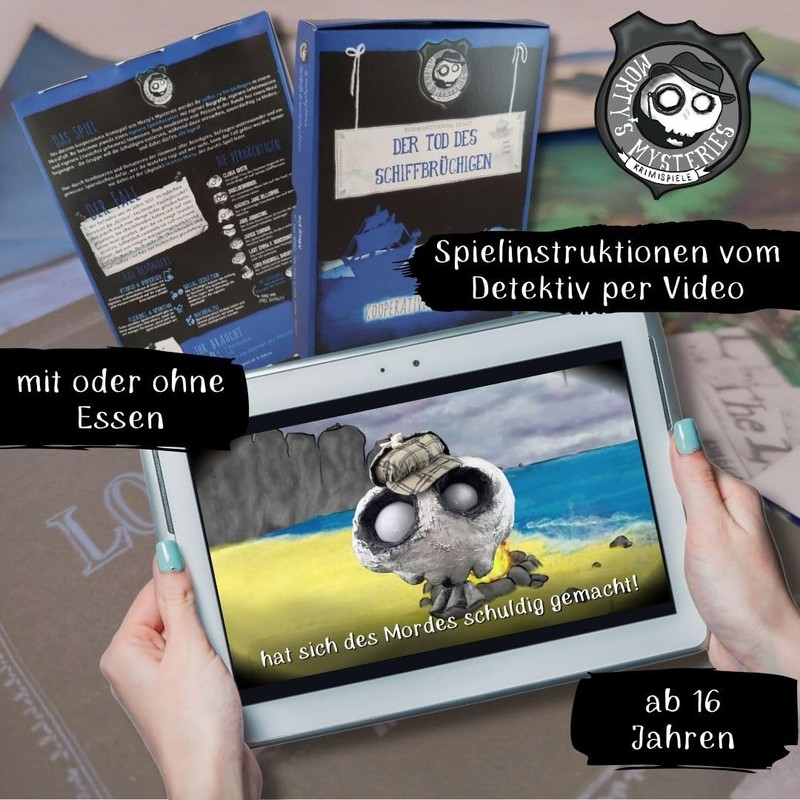 - "The Death of the Shipwrecked" is a hybrid crime dinner. All people get their own playing character with their own biography and their own dark secrets. Each person slips into one of the suspect roles. One of the characters has committed a crime, and now it is for the group to find out who of those present it was. At the same time, the goal is not to be condemned by the group at the end. The exciting: everyone can lie for this.