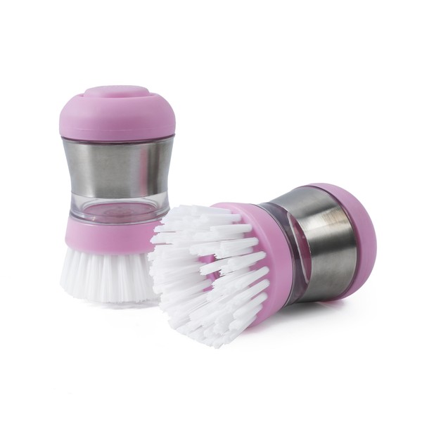 THE DISH DUCK 2 Soap Dispensing Scrub Brushes, Palm Sized, (Baby Pink) (2)