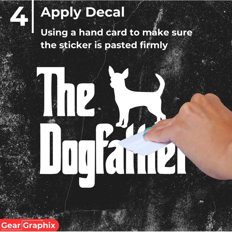 - Stylish Design: This vinyl decal features a sleek and humorous 'The Dogfather' design with a silhouette of a chihuahua dog, perfect for dog lovers and fans of classic films.