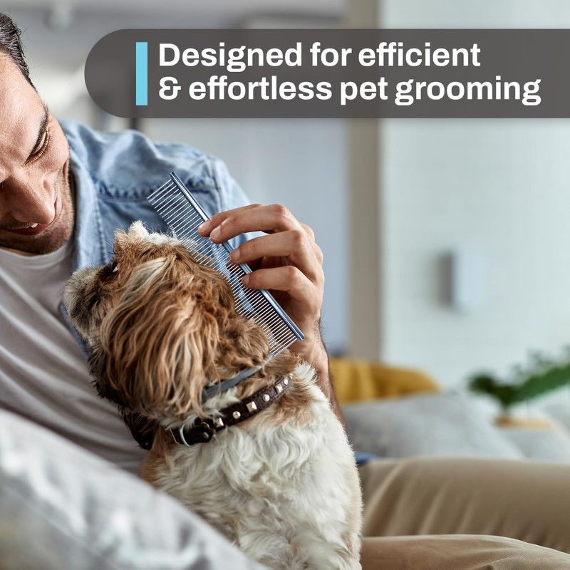 • Dual tooth design Wide tooth side can be used for combing knotted fur and the tightly spaced tooth side can be used for brushing soft, tangle-free hair around eyes, ears and legs as well as for lint and finishing.