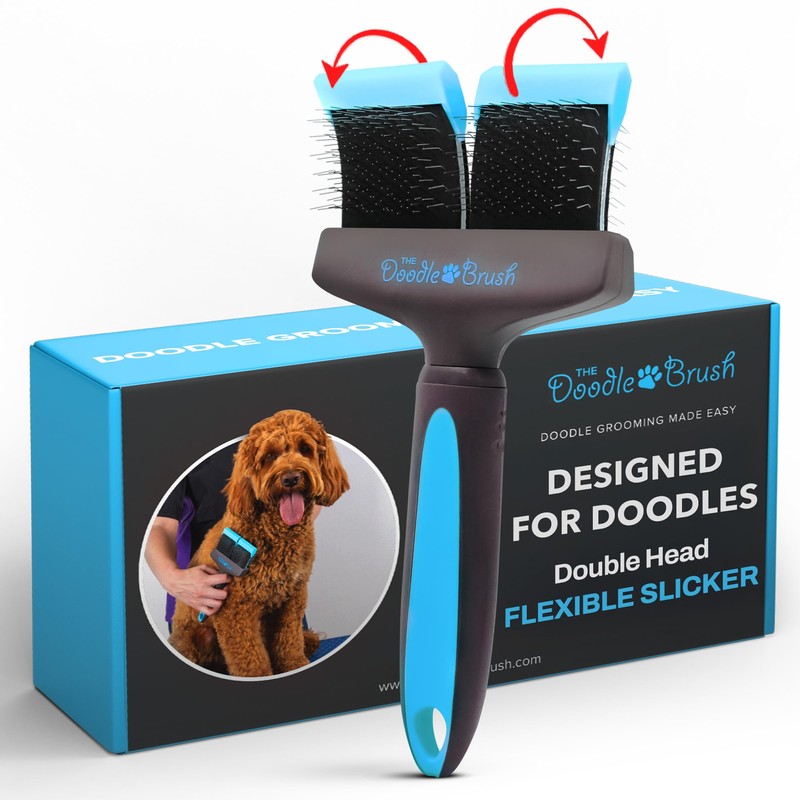 The Doodle Brush Slicker Brush for Dogs, Dual Head Flexible Head Slicker for Dogs, Poodle, Labradoodle, Sheepadoodle, Tangle-Free Grooming, Healthy & Shiny Coat, Holiday Pet Christmas Gifts