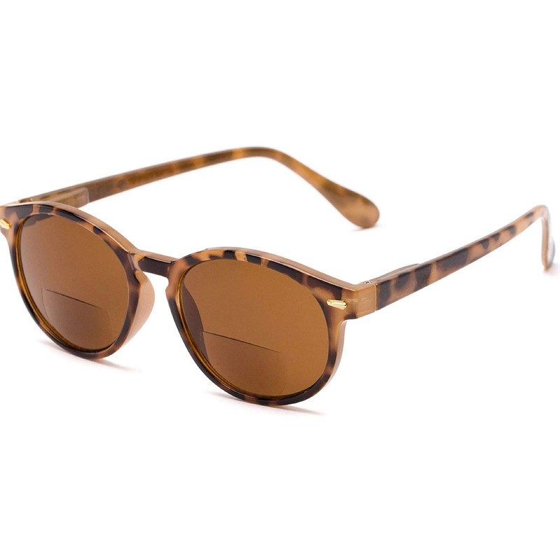 The Drama Bifocal Reading Sunglasses Sun Reader Plastic Round Style for Men and Women, Tortoise with Amber + 2.00