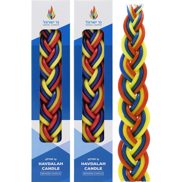 The Dreidel Company Handcrafted Havdalah Candle (Multi Color Red/White/Blue, 2-Pack)