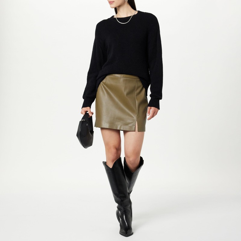 The Drop Women's Aiden Vegan Leather A-line Mini Skirt, Capers Olive, 2X, Plus Size