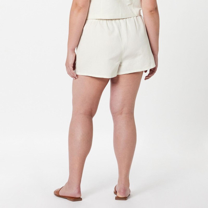 The Drop Women's Emilie Relaxed Pull-On Linen Shorts Ivory, XL