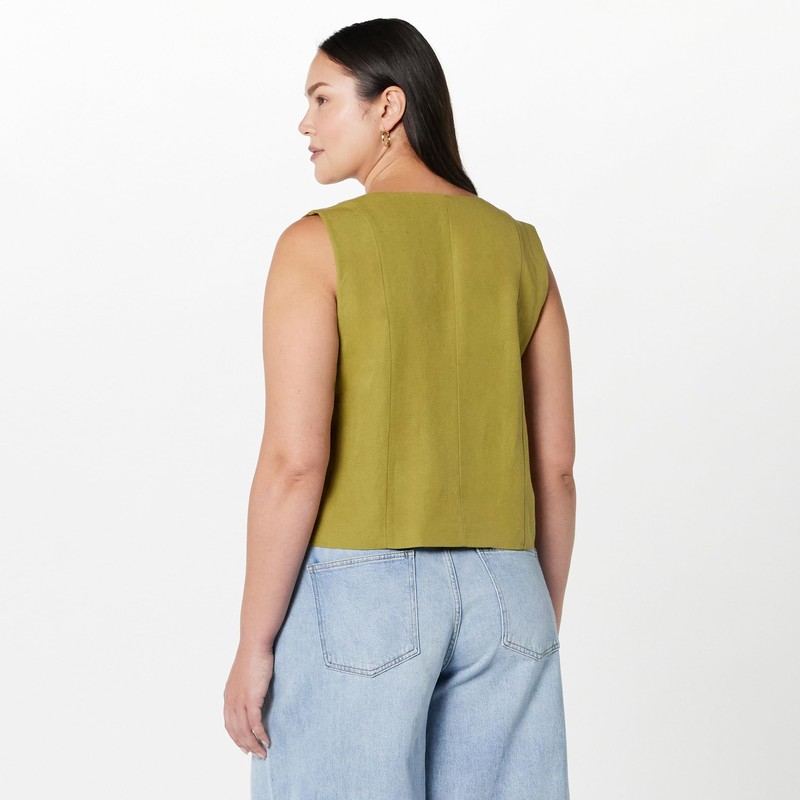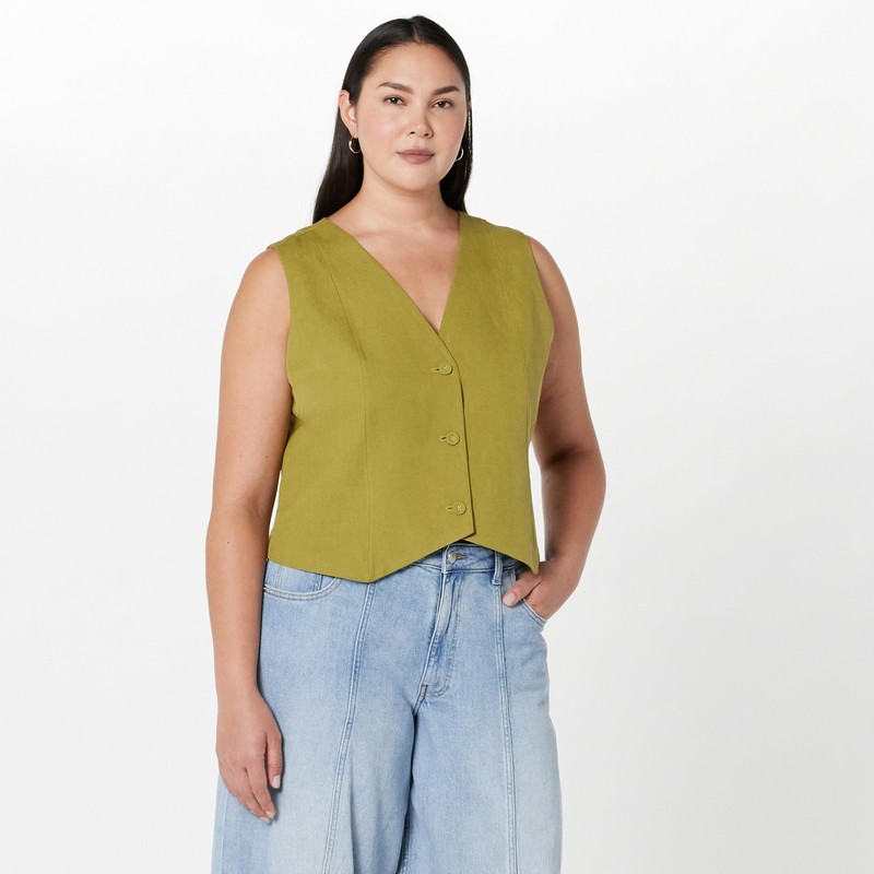 The Drop Women's ESMA Linen Vest Olive Oil, 4X, Plus Size