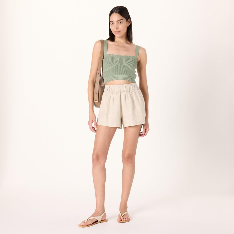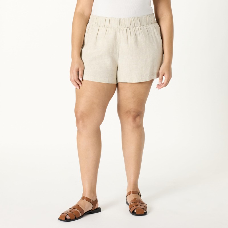 The Drop Women’s Essie Linen Pull On Mini Short, Natural Linen, L