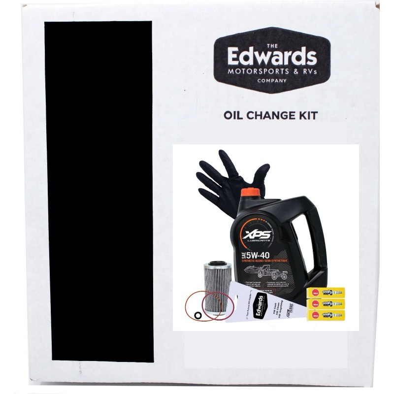 - Includes: one gallon of XPS 5W-40 synthetic blend engine oil, OEM oil filter, three NGK DCPR8E spark plugs, orings, Edwards funnel, and pair of nitrile gloves