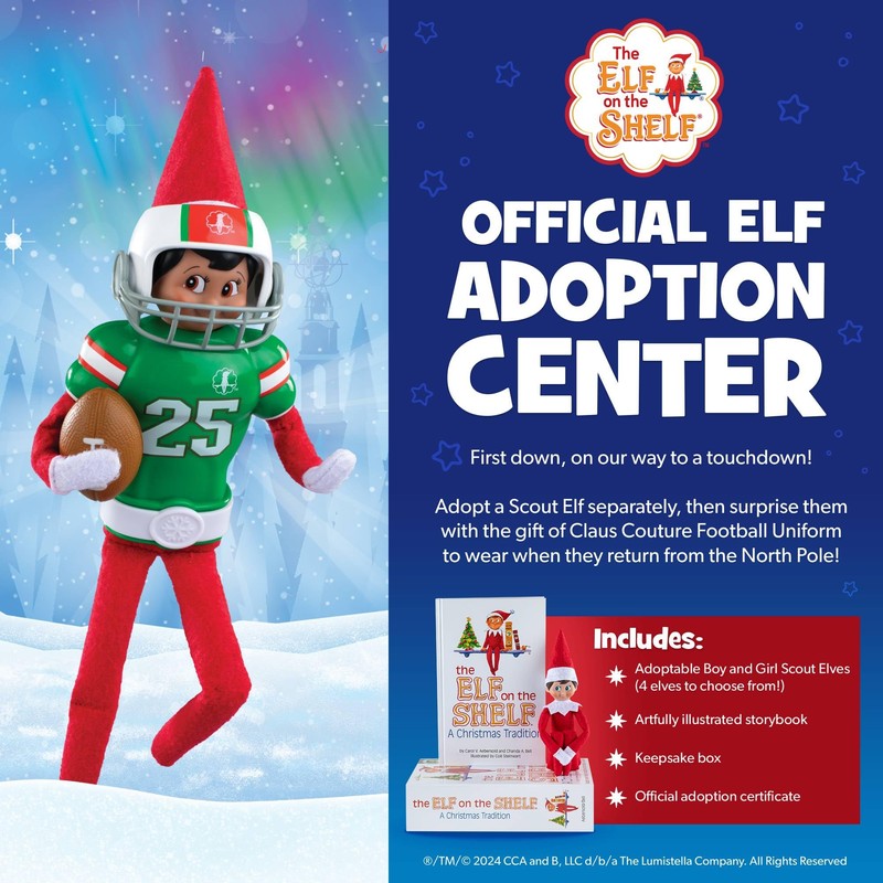 The Elf on the Shelf Claus Couture Touchdown Tidings Set - Help Your Scout Elf Find Their Inner Athlete-Includes Molded Muscle Shirt, elf-Sized Helmet and Mini Football!