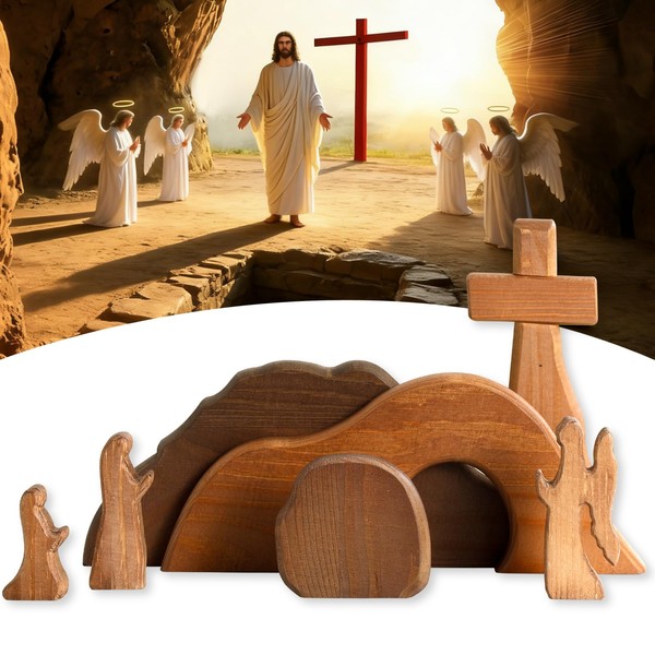 - Easter Decor: Handmade wooden Easter decorations, crafted by experts. Featuring a Jesus nativity scene, Christ statue, wooden cross, and empty tomb scene decor, this table decoration set perfectly showcases religious ideals