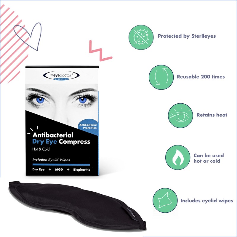 - RESUABLE HOT/COLD EYE COMPRESS: The Eye Doctor Essential is a reusable hot eye compress that provides an effective treatment to help relieve symptoms of Dry Eye Disease, MGD, Blepharitis and Chalazion (Eyelid Cysts). Can also be used cold to help relieve the symptoms of Hayfever, Allergies, Inflammation, Sinus Headaches, Migraines and Tired/Sore/Itchy/Puffy Eyes.