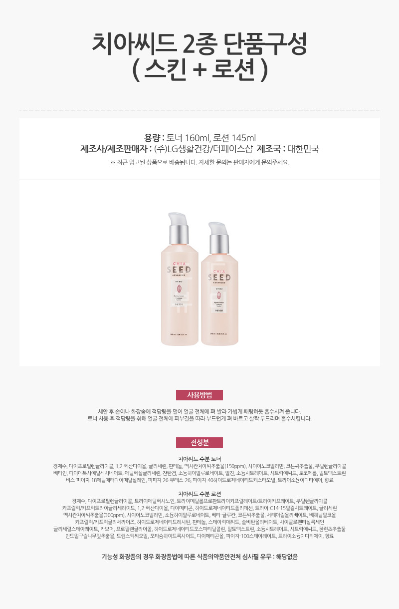 더페이스샵 치아씨드 2종 단품구성 (토너+로션)