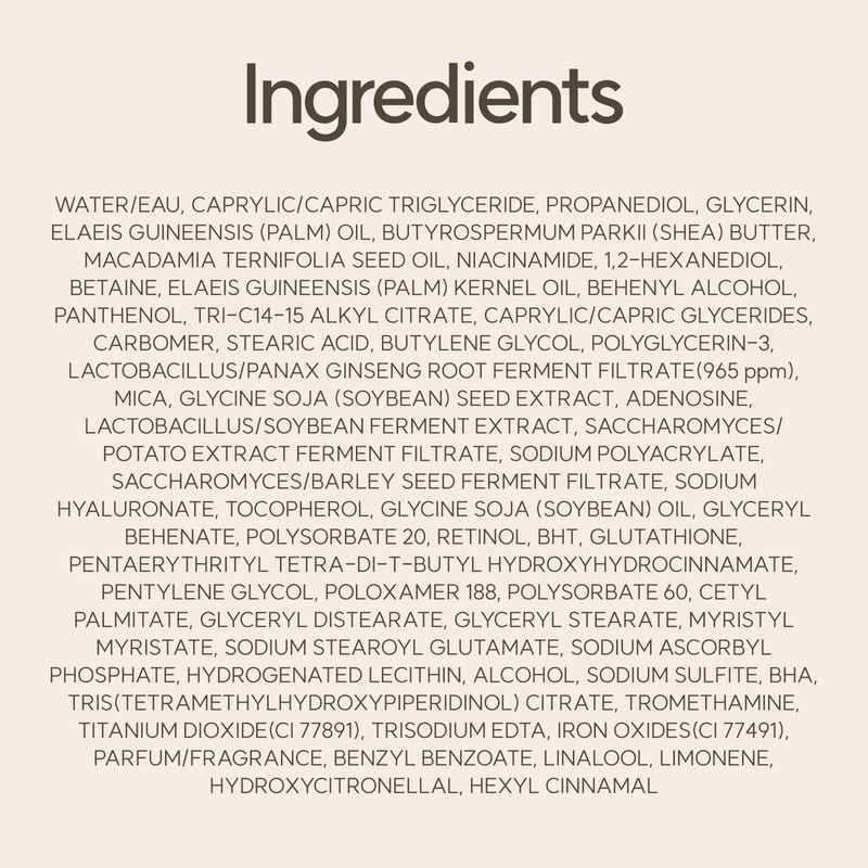 - [GINSENG EYE SERUM] Infused with sustainably grown Korean ginseng, this eye serum deeply hydrates and improves skin elasticity—revealing a naturally radiant glow. A gentle yet effective early anti-aging solution.